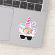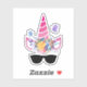 Un vinyl décal avec une licorne mignonne et tendance avec des papillons et des fleurs et portant des lunettes de soleil noires.