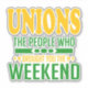 Sticker qui affiche fièrement le message "Unions : Les gens qui vous ont apporté le Week-end." Cette déclaration puissante est un signe de la main d'oeuvre acharnée des hommes et des femmes qui se sont battus sans relâche pour les droits des travailleurs et des pratiques professionnelles équitables.