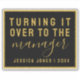 This black vinyl sticker features a stylish gold title that says 'Turning it over to the manager', with a space at the bottom for your name and the year. Stick this on the book you use to do the Abraham Hicks Law of Attraction process of the same name - write down the things you are delegating to the Universal Manager and trust they will be done to your exact specifications. Manifest your dream life! ••• For more LoA artworks, visit my store zazzle.com/in_the_vortex ••• For custom orders, message me on Zazzle