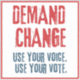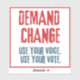 Justice sociale / protestation / réforme carré autocollant avec rouge et bleu "Demande de changement. Utilisez Votre Voix. Utiliser votre voix" texte