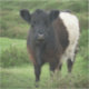 Une vache Belted Galloway, aussi connue sous le nom de ventre Oreo ou vache Panda, regarde directement dans la caméra. Pâturage ici au Parc national de Dartmoor.