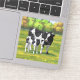 Sticker Vache Holstein et veau mignon en pâturage d'été