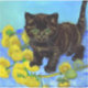 Sticker avec un chat de style Van Gogh avec des tournesols ! Un joli chaton noir pose à la légère avec des fleurs jaunes. Un cadeau fabuleux pour les amoureux de les chats et les collectionneurs d'art hollandais !