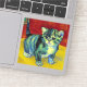 Sticker avec un chat tabby dans le style de Van Gogh! Ce chaton sucré pose adorablement sur un parquet contre des murs rouges et une fenêtre. Un cadeau génial pour les amoureux de les chats et les collectionneurs d'art hollandais !