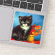 Sticker avec un beau chat Van Gogh tuxedo ! Ce petit chaton pose à côté d'un panier de fleurs orange sur une table rouge. Un grand cadeau pour les amoureux de les chats et les collectionneurs d'art hollandais !