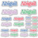 Autocollants colorés dans un certain nombre de tailles différentes avec le nom chrétien Abigail.