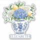 Ce mignon sticker en vinyle présente un beau vase chinoiserie bleu et blanc avec des fleurs et des citrons d'hydrangée bleu et blanc. Personnalisez avec votre choix de nom ou de texte spécial. Amusant pour des sacs-cadeaux personnalisés et des faveurs festives.