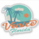 Célébration de la ville de Venise et de Venice Beach sur la côte ouest de la Floride avec une illustration de style rétro de la plage avec palmiers et coucher du soleil. Polices vintages et palette de couleurs pour une ambiance rétro cool.