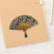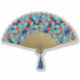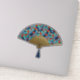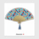 Sticker d'un ventilateur Art Déco japonais dans un chrysanthème traditionnel, stylisé, utilisé dans les textiles japonais, dans les tons bleu, turquoise et rouge vif, surligné d'or, sur le bleu foncé, avec une base en or gaufré