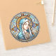 Magnifique autocollant rond religieux pour votre voiture ou VUS ! Le design présente un portrait circulaire généré par l'IA de la Vierge en vitrail.