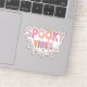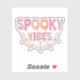 Ce design d'Halloween amusant et festif comprend l'expression "Vibes Éffrayantes" dans une police ludique et dégoulinante qui donne au texte un effet d'élégance et d'étrangeté. Les mots sont remplis de douces teintes pastel de rose, d'orange, de violet et de pêche, ajoutant une touche légère et fantaisiste au thème éffrayant. Sous le texte, une simple illustration en toile d'araignée d'une couleur brune douce ajoute une touche d'Halloween classique, en liant le design ensemble. La combinaison des couleurs pastel et des éléments éffrayants crée un contraste unique, à la fois mignon et un peu déplaisant, parfait pour Halloween