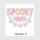 Ce design d'Halloween amusant et festif comprend l'expression "Vibes Éffrayantes" dans une police ludique et dégoulinante qui donne au texte un effet d'élégance et d'étrangeté. Les mots sont remplis de douces teintes pastel de rose, d'orange, de violet et de pêche, ajoutant une touche légère et fantaisiste au thème éffrayant. Sous le texte, une simple illustration en toile d'araignée d'une couleur brune douce ajoute une touche d'Halloween classique, en liant le design ensemble. La combinaison des couleurs pastel et des éléments éffrayants crée un contraste unique, à la fois mignon et un peu déplaisant, parfait pour Halloween