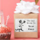 Un autocollant à la plaque avec du texte personnalisé dans la hanche, des lettres rétro, et un dessin noir et blanc d'un chat dans un manteau et des queues haut, titillant son chapeau dessus sur un arrière - plan gris grunge faux toile.