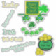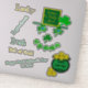 Joyeuse Saint-Patrick. Un lutin mignon et amusant composé de trèfles verts pour les yeux, le nez et la bouche. Il porte un chapeau vert doré festif avec une décoration de trèfle. Le pot d'or contient des pièces d'or et le texte, Or à garder. Dictons irlandais comprenant Lutin, pot d'or pour des autocollants découpe laser. Conception de l'original de l'œuvre © TamiraZDesigns.
