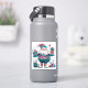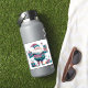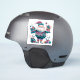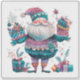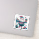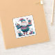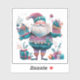 Un autocollant festif et gai présente une silhouette joyeuse ornée de motifs violets et turquoises, avec de beaux cadeaux emballés.