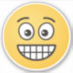 Un visage avec les yeux ouverts et une grande bouche ouverte (grinçante), montrant les dents.