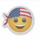 Ce design autocollant présente un joyeux visage émoji jaune avec un grand sourire amical. L'émoticône porte un élégant bandana américain, dont les étoiles et les rayures sont très bien montrées, attaché autour de la tête de manière cool. Les couleurs vives rouge, blanc et bleu du bandana contrastent agréablement avec le jaune vif de l’émoticône, créant une ambiance amusante et patriotique. Parfait pour exprimer à la fois positivité et fierté nationale, cet autocollant est un grand accessoire pour les ordinateurs portables, les bouteilles d'eau ou les carnets.