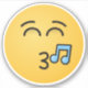 Un émoticône sifflant avec des yeux souriants et une note musicale.