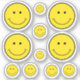 Amusez-vous avec onze (11) autocollants jaunes de sourire heureux! Décorez tout ce que vous voulez, y compris votre journal, votre ordinateur, votre bureau, ou sur une note spéciale à quelqu'un.