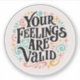 Vos sentiments sont valides santé mentale soutien émotionnel validation émotions sensibilisation citations super rétro vintage esthétique cadeaux autocollant décoration de salle d'accessoires.