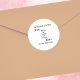 Cet autocollant mariage rond personnalisable ajoute une touche personnelle à votre journée spéciale. Téléchargez votre photo, image ou design pour créer des autocollants uniques, parfaits pour sceller des enveloppes, décorer des faveurs de mariage ou personnaliser les fournitures de fête. Idéal pour les mariages, les douches nuptiales ou les fiançailles, ces autocollants de haute qualité complèteront votre thème mariage et rendront votre événement vraiment mémorable. Choisissez la taille et la fin dans le menu d'options. Si vous avez besoin d’aide pour customiser votre conception ou si vous souhaitez explorer d’autres options de produits pour votre oeuvre, n’hésitez pas à communiquer avec vous par le bouton de message - je suis ici pour aider.