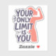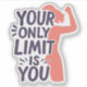 Un autocollant de motivation pour les étudiants et les femmes entrepreneurs. Texte mauve et citation : Votre seule limite est vous. Image d'une femme forte.