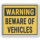 Sticker Warning Beware of Vehicles