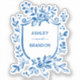 Sticker Whimsical French Blue Botanical Crest Wedding