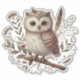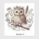 Sticker Whimsical Woodland Owl Botanical Illustration