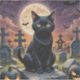 Un chat noir élégant grace un cimetière fantomatique la nuit d'Halloween, symbole de mystère et de magie. Avec un décor enchanteur de pierres tombales en ruines et une lune brillante, cette oeuvre d'art capture l'attrait du surnaturel et l'excitation de la saison. Idéal pour ceux qui aiment l'atmosphère étrange et enchanteresse d'Halloween !
