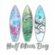 Trio de planches de surf décorées avec du texte Half Moon Bay - le design parfait pour ceux qui aiment la petite communauté côtière de Californie qui est connu pour Big Wave planche.