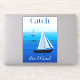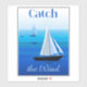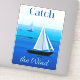 Sticker dans Poster art de yachts en mer, avec la phrase "attraper le vent", sur un arrière - plan cobalt et bleu marine cérulean