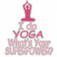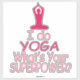 Grand autocollant vinyle rose framboise avec la silhouette d'une pose de yoga et le texte "Je fais du yoga, quelle est votre superpuissance ?"