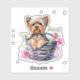 Sticker Yorkie personnalisé dans le panier aquarelle