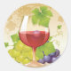 Autocollant rond avec un verre de vin et un imprimé de raisins. Customisez cet objet ou achetez tel quel. com.