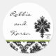 Ces magnifiques stickers de 3" de taille sont parfaits pour terminer les faveurs de mariage. Ils viennent en feuilles de 6. Nous avons une ligne entière consacrée à ce design ici à zazzle store sous l'onglet * Design Collections menu pour inclure des invitations (5x7), Étiquettes de retour, Étiquettes de messagerie, Envelope Seals, Timbres d'étape, Cup Cake Picks, Water Bottle Wrappers, Hershey's 1.55 oz. Grandes barrettes, Stickers miniatures Hershey's, Sac à Popcorn Micro-Ondes, Cartes de Place Écrits, Toppers à Sac, Cartes de Remerciement FLAT (4x5), Cartes de Remerciement FLADED (4x5), Balises de Faveur, Cartes de Menu, Cartes à Monnaie, Couvercles Lollipop, Signets, Cartes de Bingo, Cartes Marqueurs, Bingo Card Call Out Sheets, Writable Advice cards (4x5), etc.