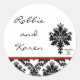 Ces magnifiques stickers de 3" de taille sont parfaits pour terminer les faveurs de mariage. Ils viennent en feuilles de 6. Nous avons une ligne entière consacrée à ce design ici à zazzle store sous l'onglet * Design Collections menu pour inclure des invitations (5x7), Étiquettes de retour, Étiquettes de messagerie, Envelope Seals, Timbres d'étape, Cup Cake Picks, Water Bottle Wrappers, Hershey's 1.55 oz. Grandes barrettes, Stickers miniatures Hershey's, Sac à Popcorn Micro-Ondes, Cartes de Place Écrits, Toppers à Sac, Cartes de Remerciement FLAT (4x5), Cartes de Remerciement FLADED (4x5), Balises de Faveur, Cartes de Menu, Cartes à Monnaie, Couvercles Lollipop, Signets, Cartes de Bingo, Cartes Marqueurs, Bingo Card Call Out Sheets, Writable Advice cards (4x5), etc.