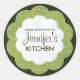 Personnalisez vos confitures maison, gâteries et autres gourmandises avec ces stickers de conserves rondes faciles à personnaliser avec votre nom. Le design est une forme verte fleurie décorée de petits pois. Idéal pour les cornichons faits maison !