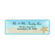 Choisissez parmi les autocollants d'adresse de retour ou les autocollants d'adresse avec une belle scène de plage, et un graphique d'étoiles de mer. Ajoutez vos coordonnées pour les invitations de mariage mariages ou autres occasions. délicieuses.