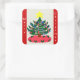 Arbre de Noël peint à la main avec ornements et sucres de canne. Joie écrite sur une jupe d'arbre rouge avec des baies rouges et des feuilles verts. Arrière - plan de point de croix Faux. Oeuvre originale de TamiraZDesigns.