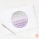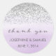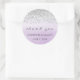 Mariage favorise merci stickers ronds avec parties scintillant faux argent et ombre violet lavande arrière - plan d'aquarelle.