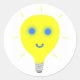 Une ampoule jaune joyeuse et souriante, avec des yeux bleus et un sourire aux flèches, est imprimée sur des autocollants ronds. Merci pour faire du shopping à CherylsArt sur Zazzle.
