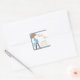 Une mère à la mode portant un sac d'achat et tenant un parapluie à pois est le point central de cet autocollant personnalisable carré. Des couleurs coordonnées complètent le cadre de ce design contemporain. Il y a beaucoup de texte personnalisable pour vous de personnaliser cet autocollant, ce qui en fait un accent idéal pour nos invitations assorties.