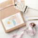 Ce sticker de plage, mignon et moderne, dispose d'une planche de surf à grains de bois sur une plage aux coquillages épars.