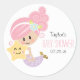 Une douce petite sirène aux cheveux roses, un bandeau à fleurs bleues, un ami d'étoiles de mer et une queue violette avec une fausse parties scintillant des ailerons sur des autocollants parfaits pour un baby shower à thème de sirène. Cette petite beauté sous la mer flotte à l'intérieur d'une bulle. Il y a aussi une version tonique de peau foncée de ce parti pour le étiquette dans ma boutique. Oeuvre © Chrissy H. Studios, LLC. Tous droits réservés.