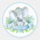 Garçons des autocollants de baby shower d'éléphant avec adorable petit éléphant portant une jolie cravate arc sur un arrière - plan en feuille de palme. Ces stickers doux pour éléphant de bébé garçon sont facilement customisés avec le texte de votre choix.