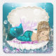 Des autocollants de baby shower de sirène avec une adorable sirène blonde portant une tiare et des perles sur un bleu turquoise et violet sous l'arrière - plan de la mer. Vous pouvez ajouter du texte pour personnaliser ces stickers de baby shower de sirène blonde mignon.
