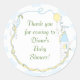 Baby shower, Stickers Bleu/Jaune/Château. Des autocollants brillants, ronds, 1 1/2" ou 3". Voici quelques façons d'utiliser des autocollants : traiter les fermetures de sacs, les étiquettes cadeaux (coller sur du papier lourd, découper la forme, perforer près du dessus pour ajouter du ruban/du cintre), la garniture de nourriture/cupcake (coller sur du papier lourd, découper la forme et le cure-dents de ruban à dos), le sceau de serviette, placer les cartes (placer l'autocollant sur un blanc, petit, la carte place et ajouter le nom)........ou quoi que vous pensiez d'autre...faites-nous part de vos commentaires! Félicitations et appréciez :) Pour personnaliser, il suffit de supprimer notre libellé et d'ajouter le vôtre. Customisez en choisissant votre taille de police, votre style et votre couleur préférés ! ...OU...laissez vide et écrivez-le à la main !