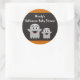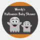 Pour une excellente façon d'effrayer vos faveurs de baby shower d'Halloween, papeterie ou cadeaux, utilisez cette adorable gamme d'autocollants de baby shower fantôme. Les autocollants ronds offrent un fantôme de maman et de bébé comme images centrales sur les autocollants. La couleur arrière - plan est un design en mosaïque marron foncé avec des bandes orange qui courent le dessus et le bas des autocollants. Le lettrage a été réglé sur blanc et est positionné sur le dessus des autocollants. Toutes les formulations peuvent être personnalisées avec vos propres détails de soirée de baby shower Little Ghost. Idéal pour une fête du baby shower C'est un bébé d'Halloween. Trouvez le même petit design fantôme sur d'autres produits dans le magasin.