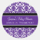 Baby shower merci vous préférez étiquette autocollant dans élégant violet foncé, noir et blanc classique motif floral damask. Personnalisable avec votre propre texte, contactez-nous pour un changement de couleur. La meilleure façon de décorer vos faveurs de baby shower et de remercier vos invités d'avoir fait partie de votre journée spéciale.